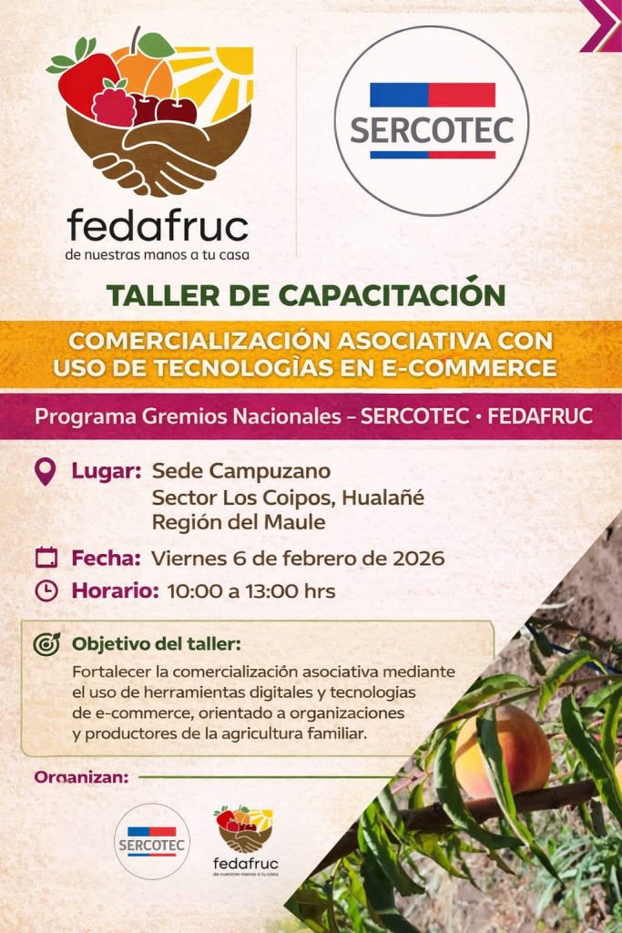 “Con el objetivo de acortar la brecha digital y fortalecer el trabajo gremial, Fedafruc, en conjunto con Sercotec, llevó a cabo con éxito un ciclo de talleres enfocados en la Comercialización Asociativa con uso de Tecnologías en E-Commerce.